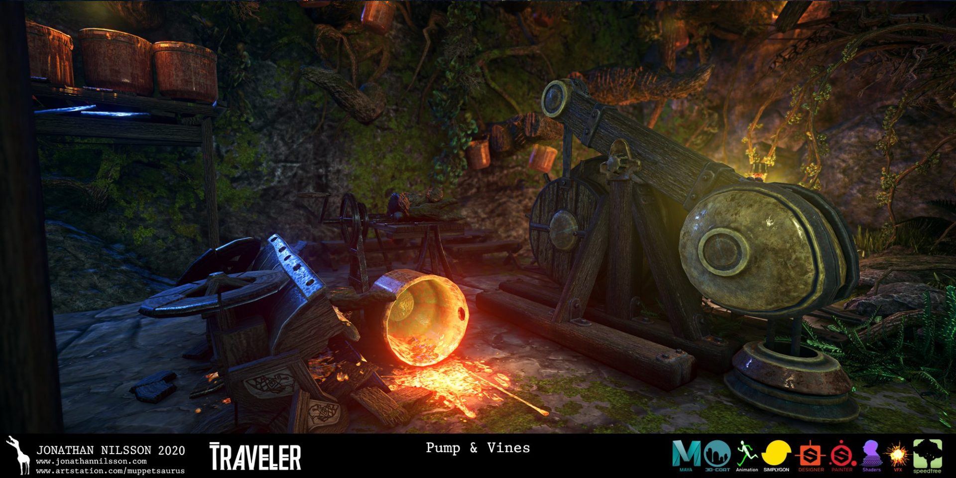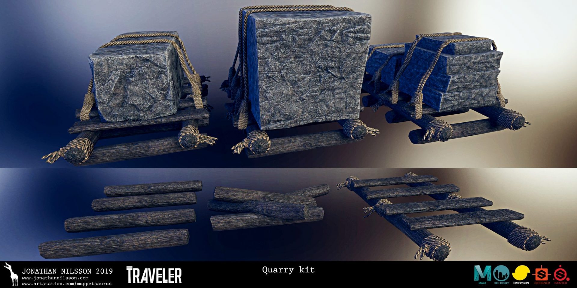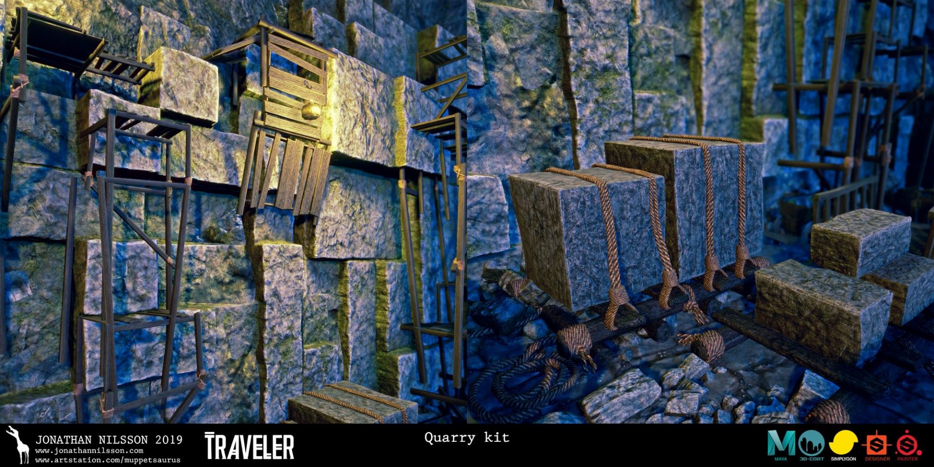 Traveler var ett tredje persons pusselspel som utspelades i en ökenruin. Projektet började av spelutvecklare på Högskolan i Skövde och visades upp på spelutvecklingsmässa. Mitt arbete var inom animation, rigging, 3D och VFX. Jag jobbade mycket med miljön. Bilderna nedanför är både bilder på skärmdumpar av spelet och specifika arbeten jag gjort.