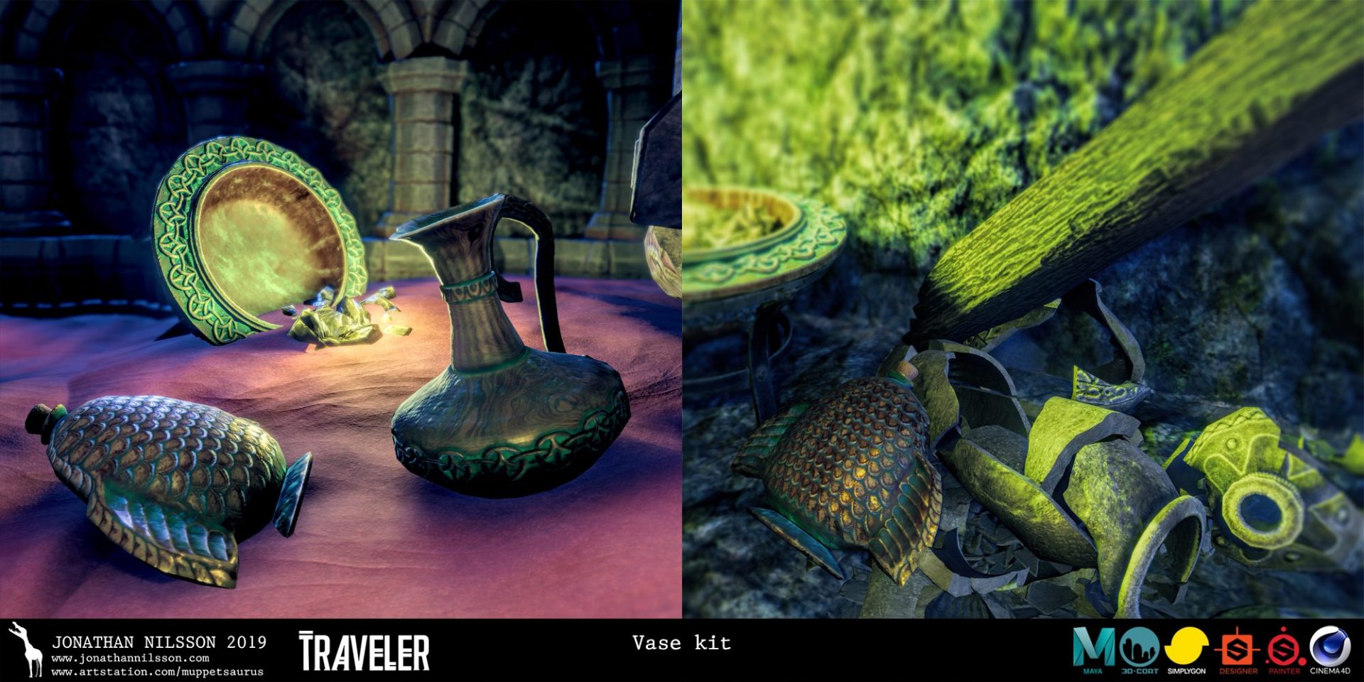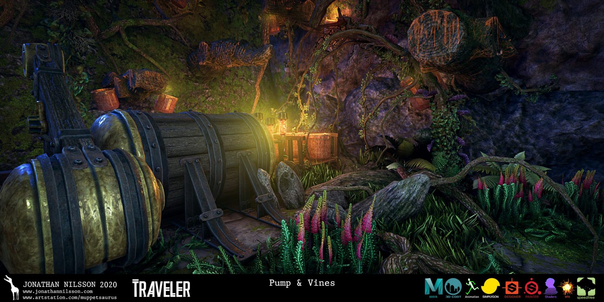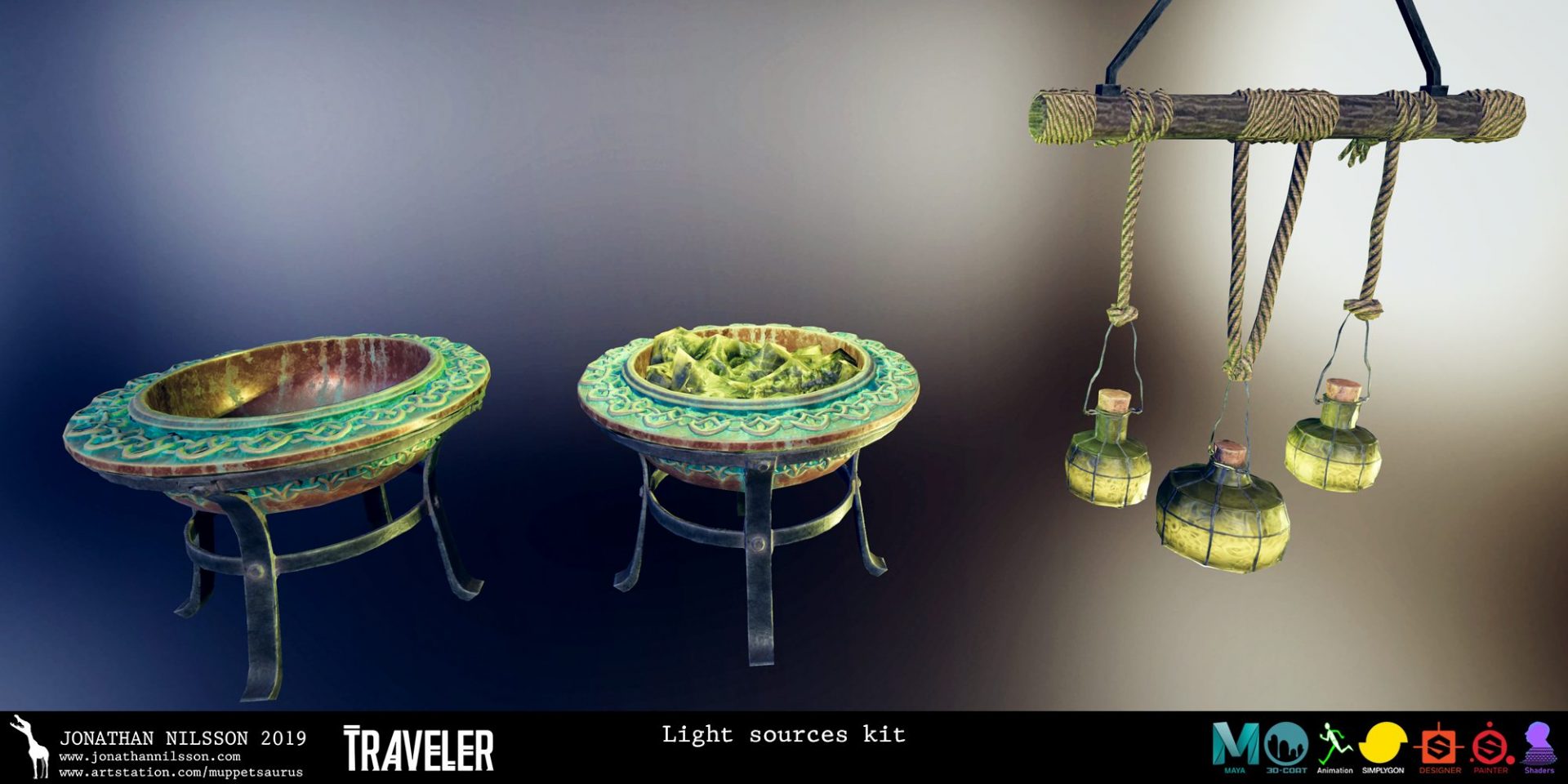 Traveler var ett tredje persons pusselspel som utspelades i en ökenruin. Projektet började av spelutvecklare på Högskolan i Skövde och visades upp på spelutvecklingsmässa. Mitt arbete var inom animation, rigging, 3D och VFX. Jag jobbade mycket med miljön. Bilderna nedanför är både bilder på skärmdumpar av spelet och specifika arbeten jag gjort.
